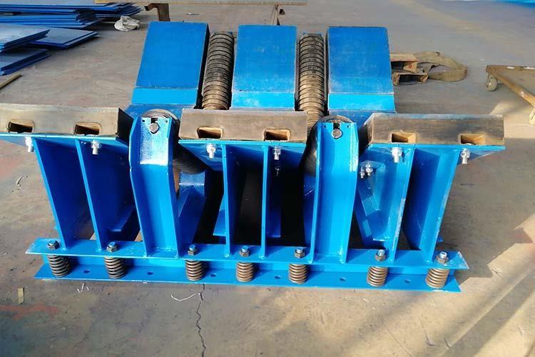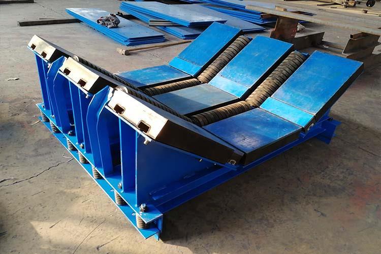 皮帶機(jī)緩沖床主要用于皮帶機(jī)導(dǎo)料槽下方的落料口處,當(dāng)物料下落時(shí),緩沖床利用自身彈性對(duì)物料下落到皮帶上的沖擊力進(jìn)行處理,使沖擊力達(dá)到很小,以保證皮帶機(jī)正常運(yùn)行。皮帶機(jī)緩沖床的表層緩沖條擁有五百萬(wàn)分子量的高分子聚乙烯板面,該高板于皮帶呈面面接觸,使?jié)櫥赃_(dá)到很高,摩擦系數(shù)降至很低。